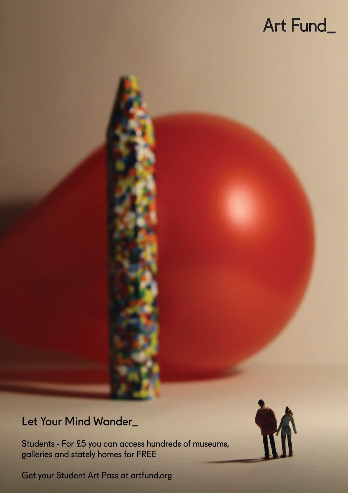I also thought that the designs involving the larger text 'Let Your Mind Wander_' stood out far better. All the typography is Art Fund's branding typeface to keep the designs consistent with the brand, keeping the images professional. Although in these designs on black writing was experimented with and this did appear to be lost on the page. For any other colour text to work well the background image needed to be white, rather than cream, so I began planning to re-shoot the images (also considering a change in sculptural content...!)